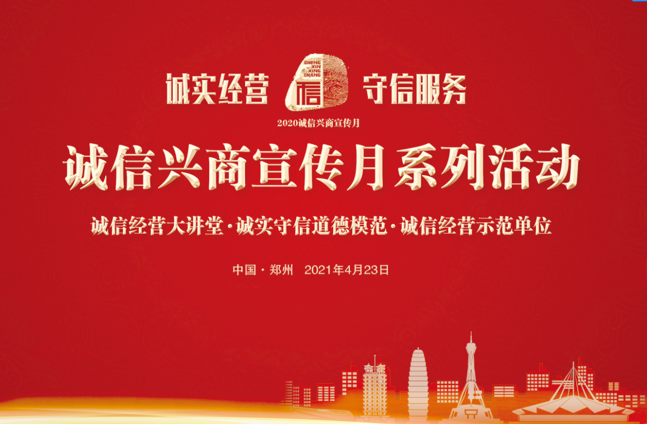 2021年4月23日下午,“2020誠信興商宣傳月誠信經(jīng)營大講堂暨誠實守信道德模范誠信經(jīng)營示范單位”頒獎盛典在河南省總工會報告廳隆重舉行。