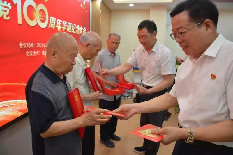 大會對為50年以上黨齡黨員進(jìn)行了隆重表彰。并由二輕局黨委書記高吟朝和黨支部書記曾占國為獲獎同志做了頒獎。
