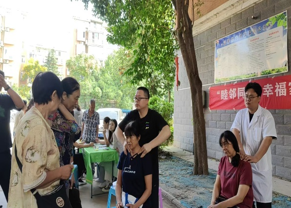 在便民義剪區(qū)理發(fā)師們附身詢問居民需求為他們?cè)O(shè)計(jì)“私人訂制”的專屬發(fā)型,解決居民的“頭”等大事。還有專業(yè)疼痛治療師,現(xiàn)場(chǎng)進(jìn)行頸肩腰腿痛按摩治療,立竿見影。