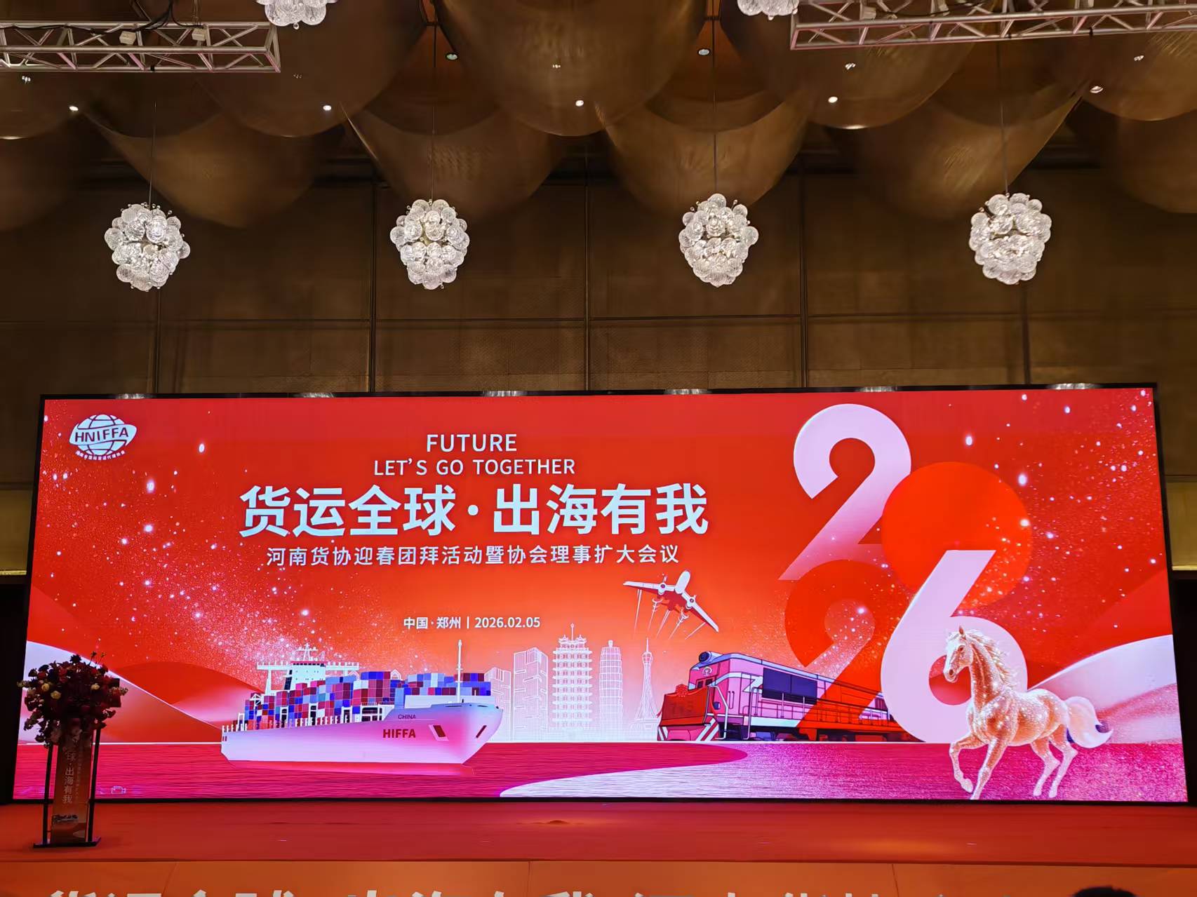 2026年2月5日晚六時,鄭州建業(yè)艾美酒店三樓華燈璀璨、賓朋云集,“貨運全球·出海有我——河南貨協(xié)迎春團拜活動暨協(xié)會理事擴大會議”在此盛大啟幕。此次活動由河南省貨運協(xié)會主辦,旨在凝聚行業(yè)力量,共商貨運出海大計,推動河南貨運行業(yè)高質(zhì)量發(fā)展。宗圣集團董事長曾占國先生受邀出席,與眾多行業(yè)精英共同見證這一重要時刻。